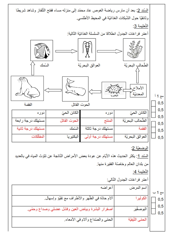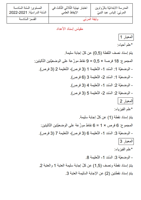 اختبار نهائي الثلاثي الثّالث في مادّة الإيقاظ العلمي السنة السادسة
