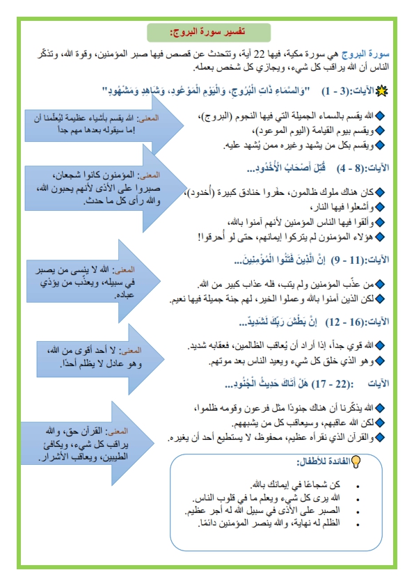 تفسير سورة البروج مبسطة للاطفال تفسير سورة البروج مبسطة للاطفال موقع مدرستي