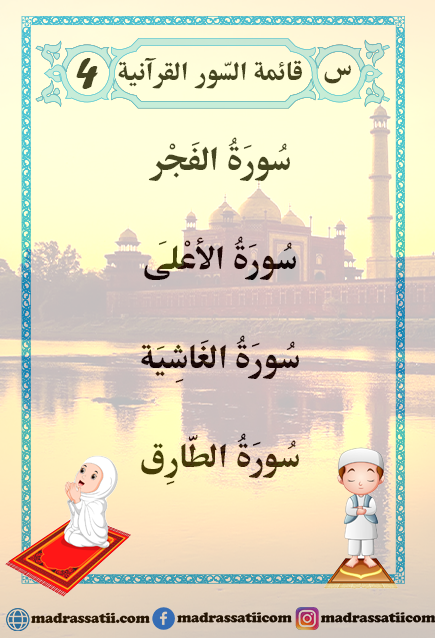 قائمة السور القرآنية لتلاميذ السنة الرابعة إبتدائي
