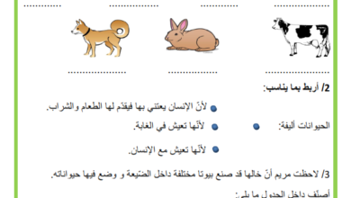 تمارين حول محور الحيوانات الأليفة و أماكن عيشها و نظام غذائها ( عاشب ، لاحم ، كالش) لتحميل أو…