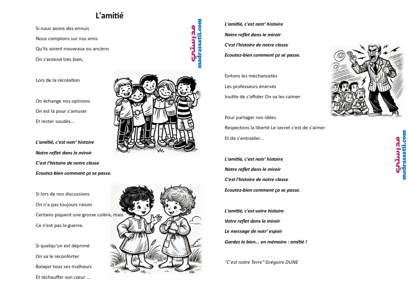 موقع مدرستي هو موقع تعليمي تربوي غني بالموارد التعليمية كالإمتحانات و التّمارين و التّقييمات و الأناشيد و المعلّقات و غيرها التي تهم كل من التّلميذ و الولي و المربي على حد سواء و نشير إلى أن محتوايات هذا الموقع هي من مجهودات الفريق العامل عليه و نرجو منكم إخواني أخواتي مشاركة المنشورات في مواقع التواصل الإجتماعي مع ذكر المصدر وشكرا.
